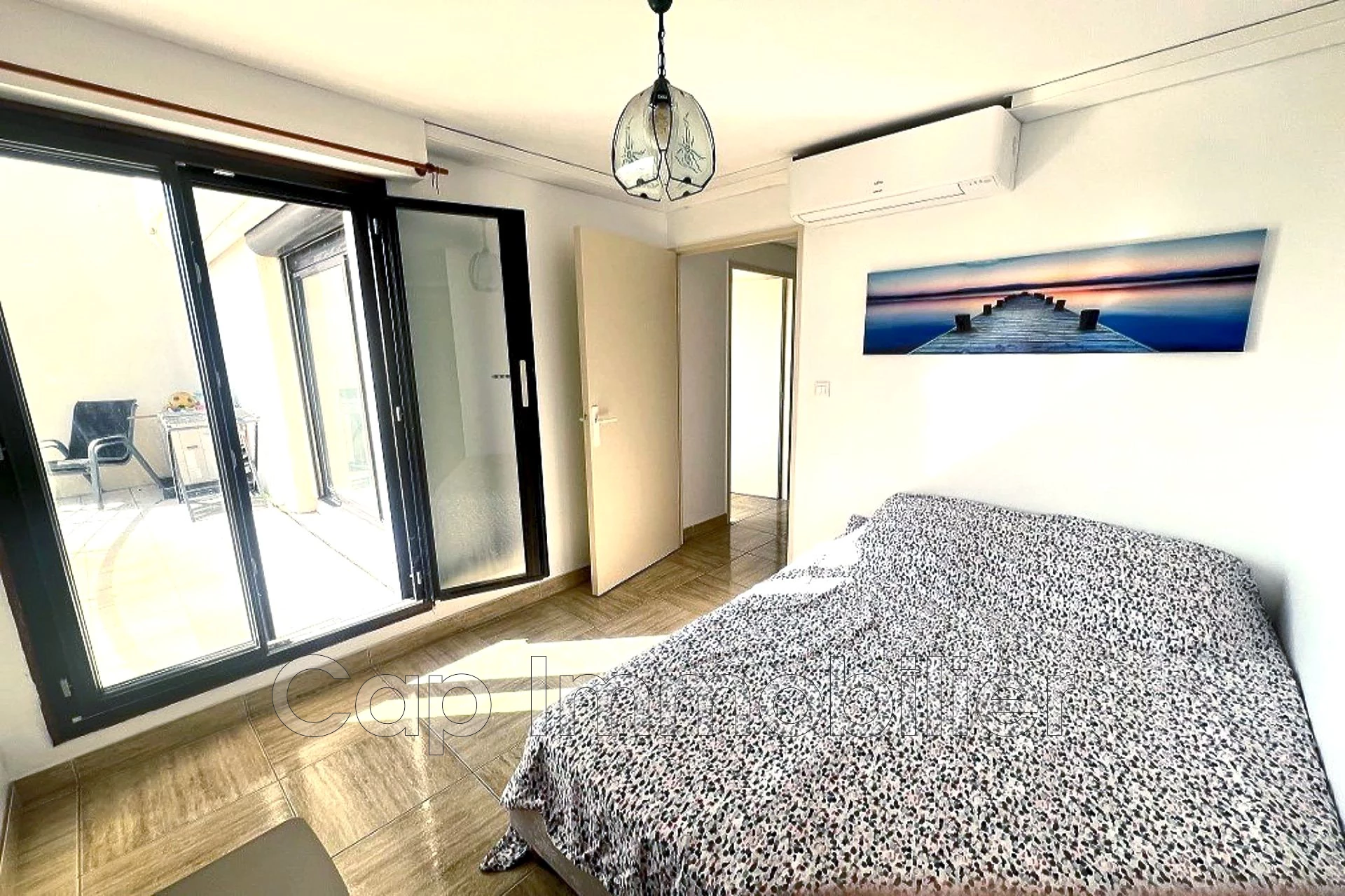 Occupant les 5ème et 6ème étages, ce duplex se compose, au premier niveau, de deux chambres, d'une cabine, d'une salle d'eau, wc séparés ainsi qu'une belle terrasse.